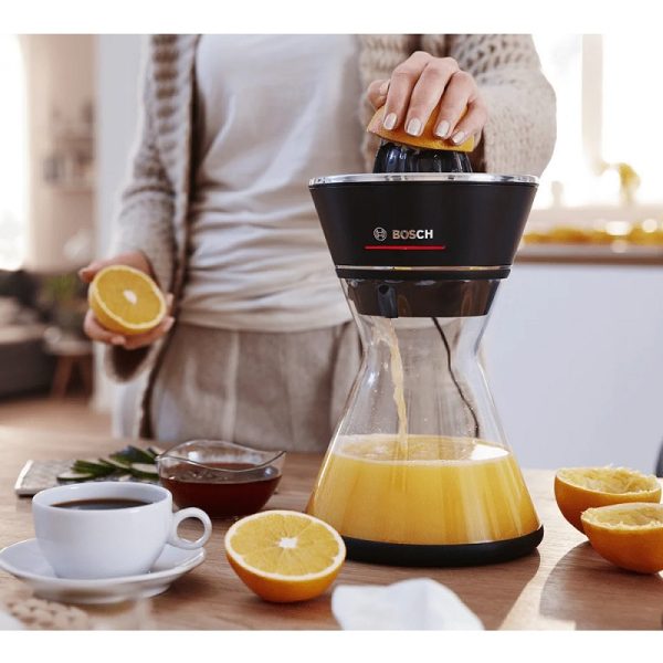 آب مرکبات گیری بوش MCP72GPB با توان ۴۰ وات طراحی شده و مجهز به یک مخروط فولسایز فلزی است که قادر به آبگیری انواع مرکبات بزرگ و کوچک میباشد. عملکرد دستگاه بسیار ساده و کاربرپسند است؛ به این صورت که تنها کافی است میوه را روی مخروط فشار دهید تا فرآیند آبگیری آغاز شود.