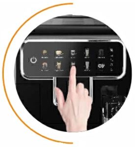 صفحه‌نمایش دیجیتال اسپرسو ساز گوسونیک مدل GEM-881، وضعیت عملکرد، سطح آب، تنظیمات آسیاب، حالت آماده به کار و شست‌وشوی خودکار را نمایش می‌دهد. این نمایشگر تجربه کاربری راحت‌تر و مدرن‌تری را برای کاربران فراهم می‌کند و کار با دستگاه را دقیق و ساده می‌سازد.