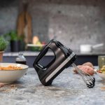 ابعاد دستگاه حدود ۲۰ × ۱۵ × ۸ سانتیمتر است که فضای کمی اشغال میکند و به راحتی داخل کابینت یا کشو قرار میگیرد. وزن همزن نیز در حدود ۱ تا ۱.۱ کیلوگرم است؛ وزنی متعادل که هم سبک است و هم به اندازه کافی سنگینی دارد تا هنگام همزدن، لرزش اضافی ایجاد نشود.