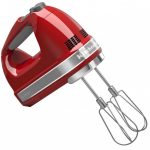 همزن دستی ۹ سرعته کیچن اید مدل Kitchenaid 5KHM9212E، یک همزن دستی کاربردی است که میتواند تمام نیاز های شما را برآورده کند. این دستگاه دارای ۹ سرعت متفاوت با بازه توان خروجی ۸۵ تا ۱۰۸ وات است. طراحی ارگونومیک این همزن و جنس منعطف قسمت زیری دسته ی آن به سهولت کار با آن کمک می کند. وزن بسیار سبک این دستگاه به کنترل آن بدون خسته شدن دست و تسلط کامل بر روی آن کمک بسزایی کرده است. شما میتوانید به کمک دکمه های موجود بر روی دسته ی این همزن به راحتی سرعت آن را در هنگام کار تغییر دهید. از طرفی وجود LED بر روی دسته ی آن به تشخیص میزان سرعت دستگاه نیز کمک می کند. جنس بدنه ی این همزن دستی کیچن اید پلاستیک است و از وزنی حدود ۱۴۰۰ برخوردار می باشد.
