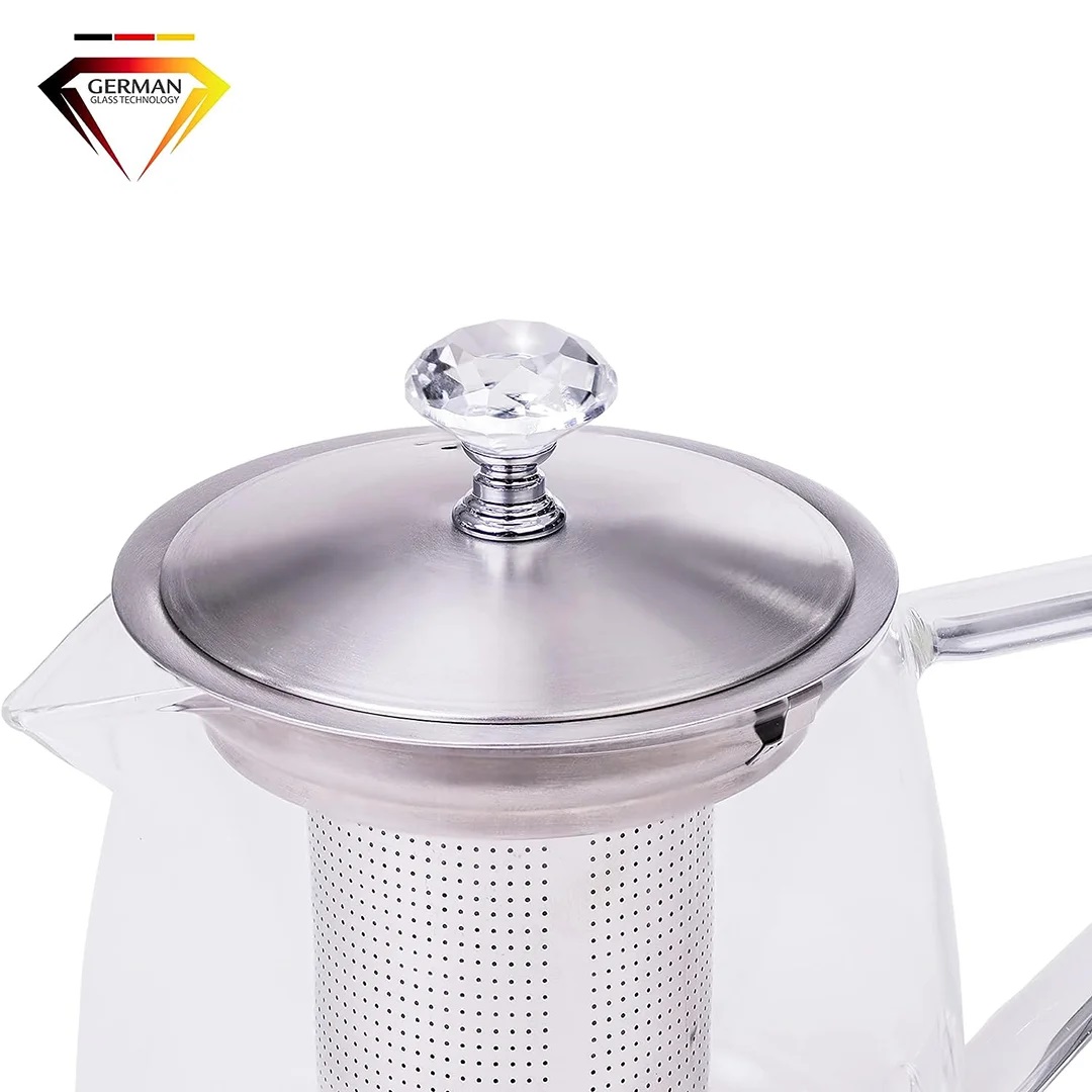 قوری شیشهای مقاوم با صافی استیل قابل شستشو