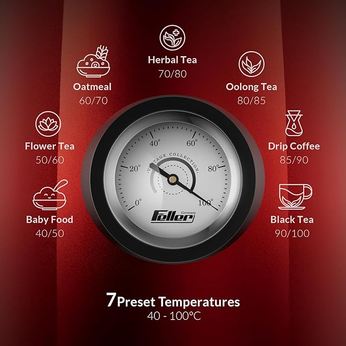 چای ساز فلر مدل TS290 یک پنل لمسی هوشمند روی پایه دارد که علاوه بر روشن و خاموش کردن دستگاه، امکان انتخاب دقیق دمای آب در ۷ مرحله را فراهم میکند. این ویژگی باعث میشود برای هر نوع نوشیدنی، دمای ایدهآل داشته باشید.