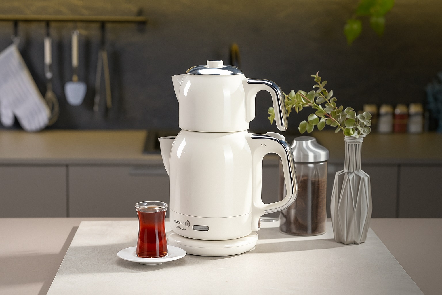 مکانیزم عملکرد دستگاه به این صورت است که قوری روی کتری قرار میگیرد و حرارت از طریق المنت مخفی به آب منتقل میشود. این روش ساده و مؤثر، دمآوری چای را با کیفیت بالا و طعم دلنشین تضمین میکند.