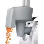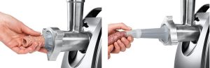 یکی از ویژگیهای کاربردی چرخ گوشت بوش مدل MFW68680، سینی بزرگ و وسیع آن است که امکان قرار دادن مقدار زیادی گوشت و مواد غذایی را فراهم میکند. گلویی یا لوله ناودانی با ابعاد مناسب، هدایت مواد غذایی به داخل دستگاه را سریع و آسان میکند و سرعت چرخ کردن گوشت را به طرز چشمگیری افزایش میدهد. با این ویژگی، دستگاه توانایی چرخ کردن حدود 4.5 کیلوگرم گوشت در دقیقه را دارا میباشد.