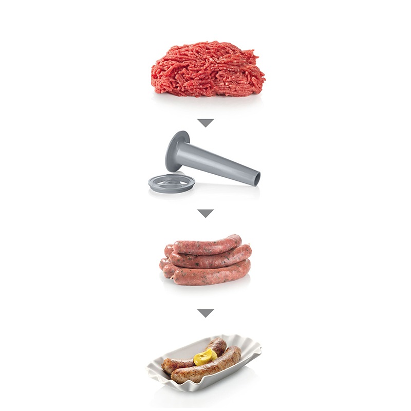یکی از ویژگیهای متمایز چرخ گوشت MFW68680، امکان تهیه انواع سوسیس و کبه خانگی است. با قطعات سوسیسساز، میتوانید سوسیسهای تازه، سالم و خوشمزه را بر اساس ذائقه خود آماده کنید. قطعه کبهساز نیز فرآیند تهیه این غذای سنتی را ساده میکند و به شما امکان میدهد کبه را با فرم دلخواه و کیفیت ایدهآل تهیه نمایید. نازلهای فرمدهنده داخل جعبه محصول قرار دارند تا شکلدهی کبه و سوسیس با دقت و راحتی کامل انجام شود.