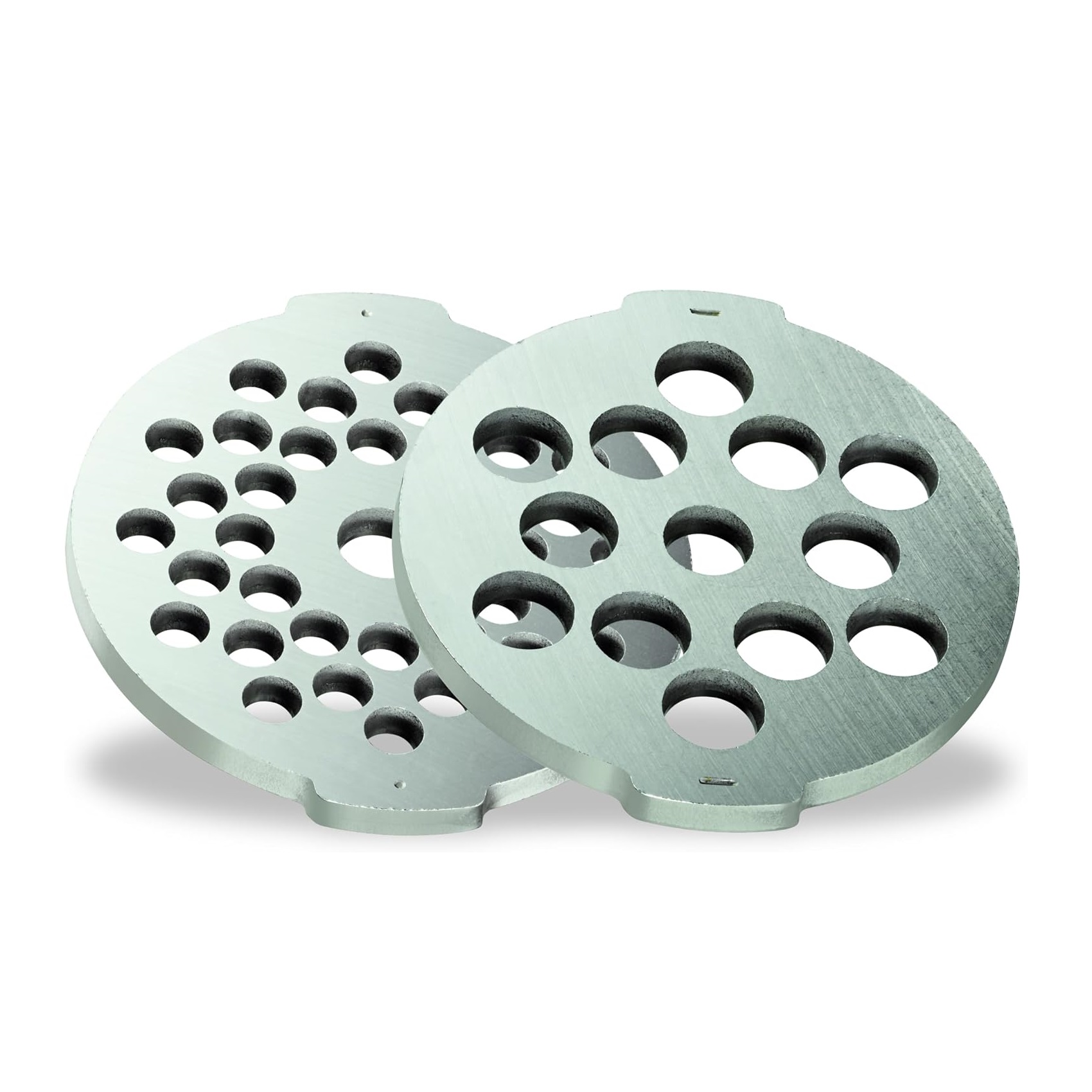 در بستهبندی چرخ گوشت مولینکس مدل ME686832 ، سه شبکه فلزی با اندازههای مختلف سوراخ وجود دارد: